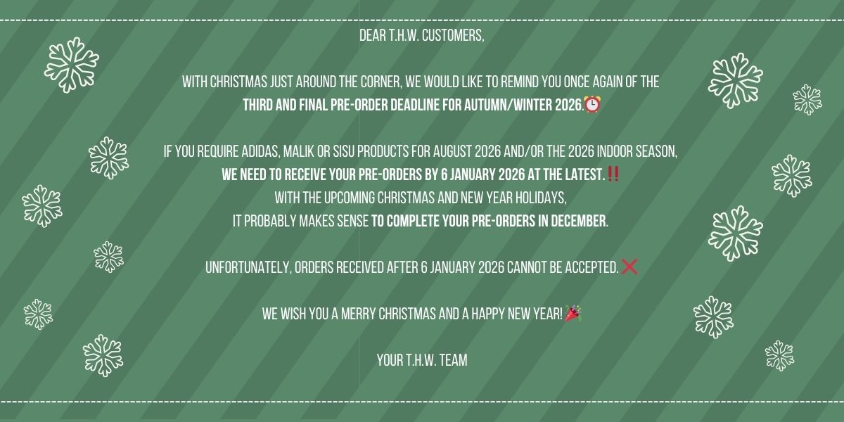 Order deadline for adidas, MALIK, OBO SISU is 15.07.2025.